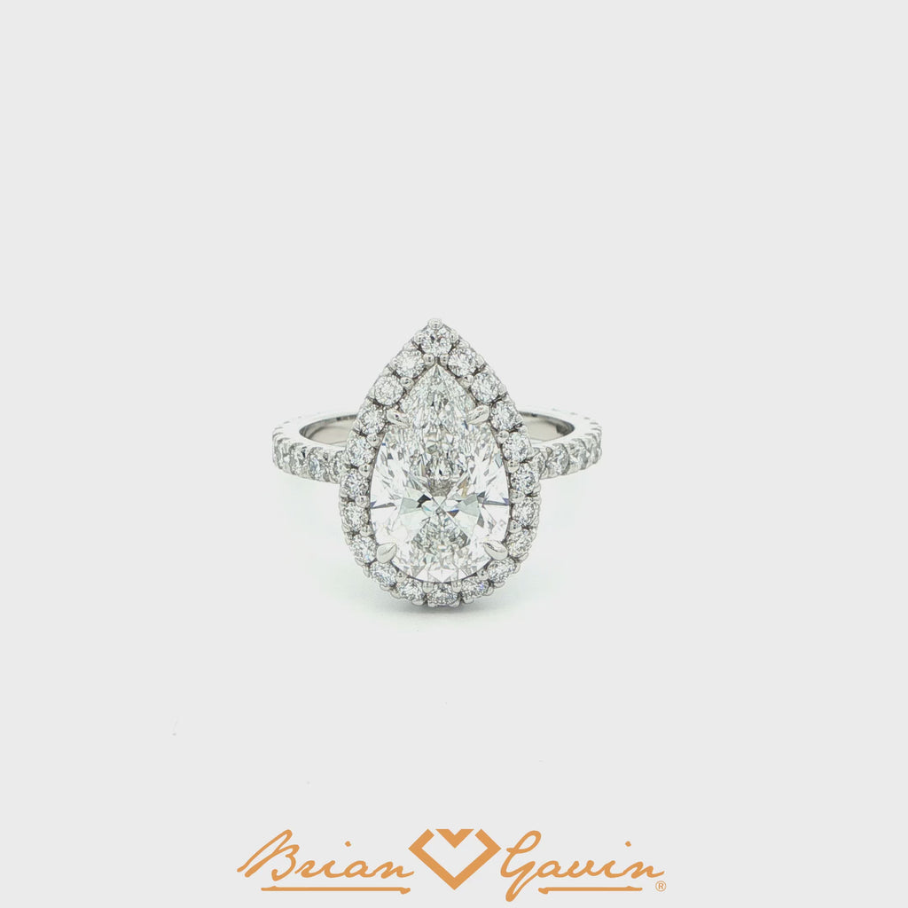 Custom halo setting based off the Sarah Halo (Product ID: 5493) using approx. 1.03 ctw F/G VS Brian Gavin Signature melee. Only available in platinum. Each setting is created to accommodate the exact measurements of your center stone and your ring size and is a final sale. Price does not include center stone. Add $150 for diamonds larger than 2 carats. Please note that for ring sizes above size 8, additional fees will apply. This is due to the increase in diamonds and metal required. Please contact us for larger ring sizes.Select your center stone from our extensive online inventory.